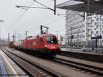 Az ÖBB 1116 014-0 pályaszámú Taurus mozdonya egy nemzetközi tehervonatot húz Ausztria felé Ács állomáson.