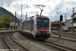 1216-023 with an intermodal train passes through the station in St. Jodok;