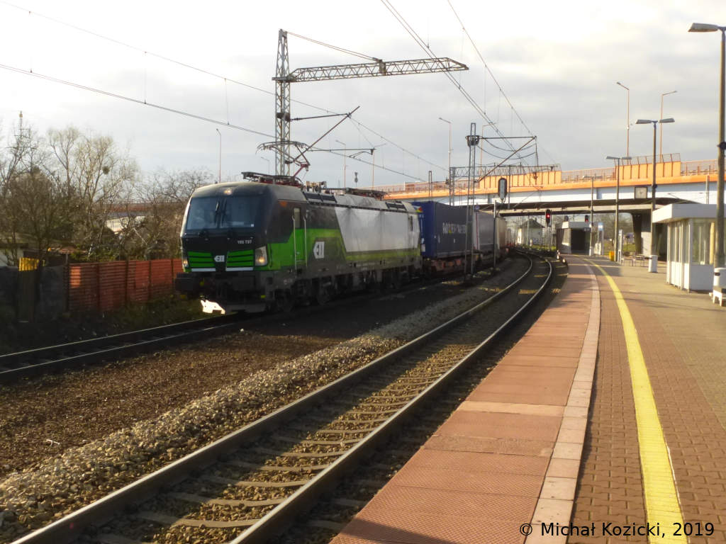 LTE 193 737 with an intermodal train is passing Poznan Gorczyn, Poland, 09.02.2019.