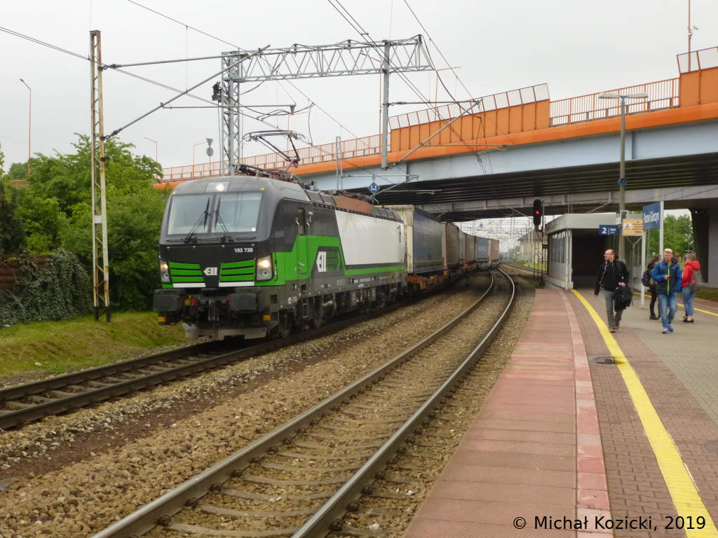 LTE 193 738 with an intermodal train is passing Poznan Gorczyn, Poland, 16.05.2019.
