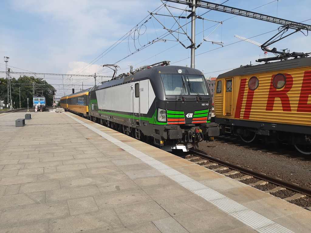 ELL 193 743 bei der Einfahrt nach Praha hl.n. mit Regio Jet. August 2019.