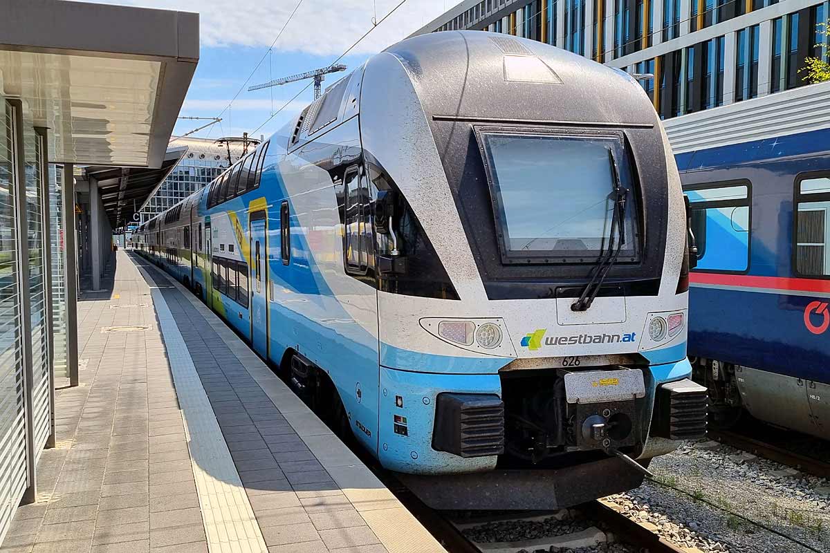 Austrian Westbahn EMU-6 nr. 4010-026 (NVR nr. 93 85 4010 126-9 CH-WSTBA), double-deck trains "KISS 3" from Stadler(CH), at Munchen Hbf. 05/08/2022.