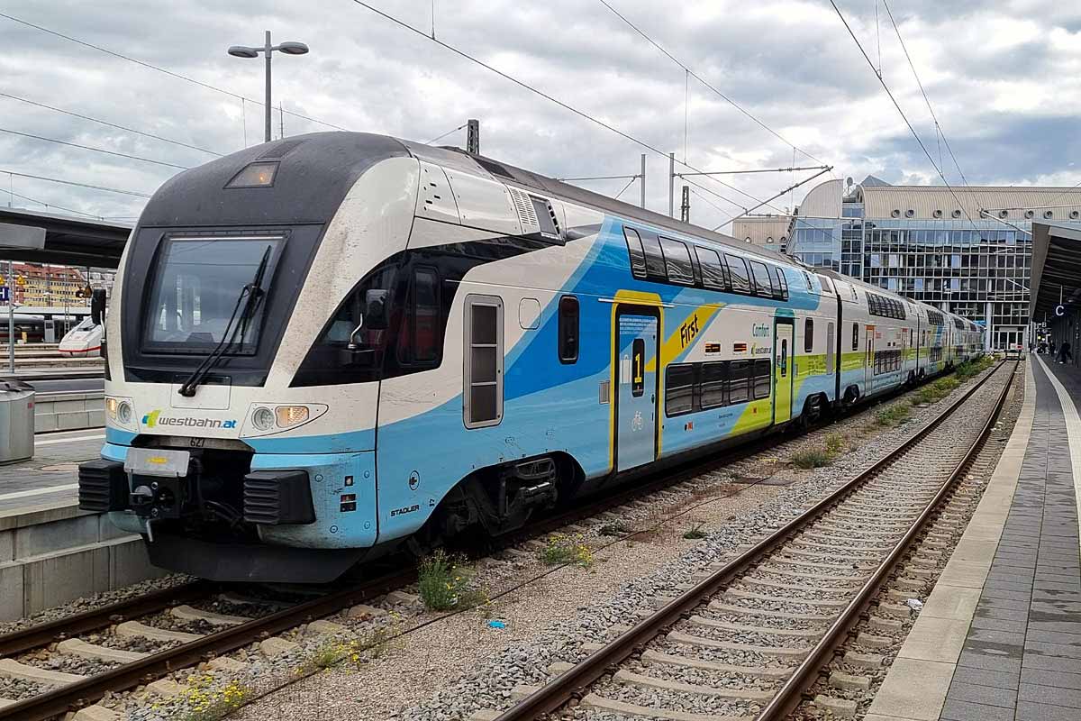 Austrian Westbahn EMU-6 4010-027 (NVR nr. 93 85 4010 627-6 CH-WSTBA), double-deck trains "KISS 3" from Stadler(CH), at Munchen Hbf. 27/10/2022.
