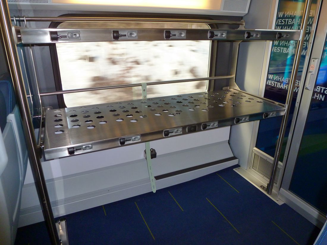 Westbahn, middle car, lower floor. Luggage shelf, with coin operated
