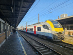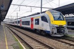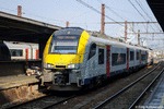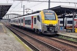 An EMU AM08, owned by SNCB (Societe Nationale des Chemins de fer Belges / Belgian Railways) at railway station Bruxelles Midi, using a passenger train.
