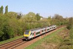 EMU 08074 as passenger train L3882 between Leuven and Braine-le-Comte, is passing in Hennuyères on line 96, 17 April 2014.
