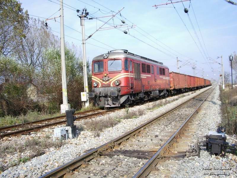 06111-9 on railway station Voluiak with freight train to Sofia.