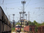 06114-3 on central railway station Sofia with freight train.