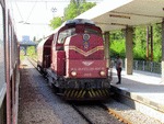 Diesel locomotive 55.071 at railway station Giueshevo with local train from Kustendil.