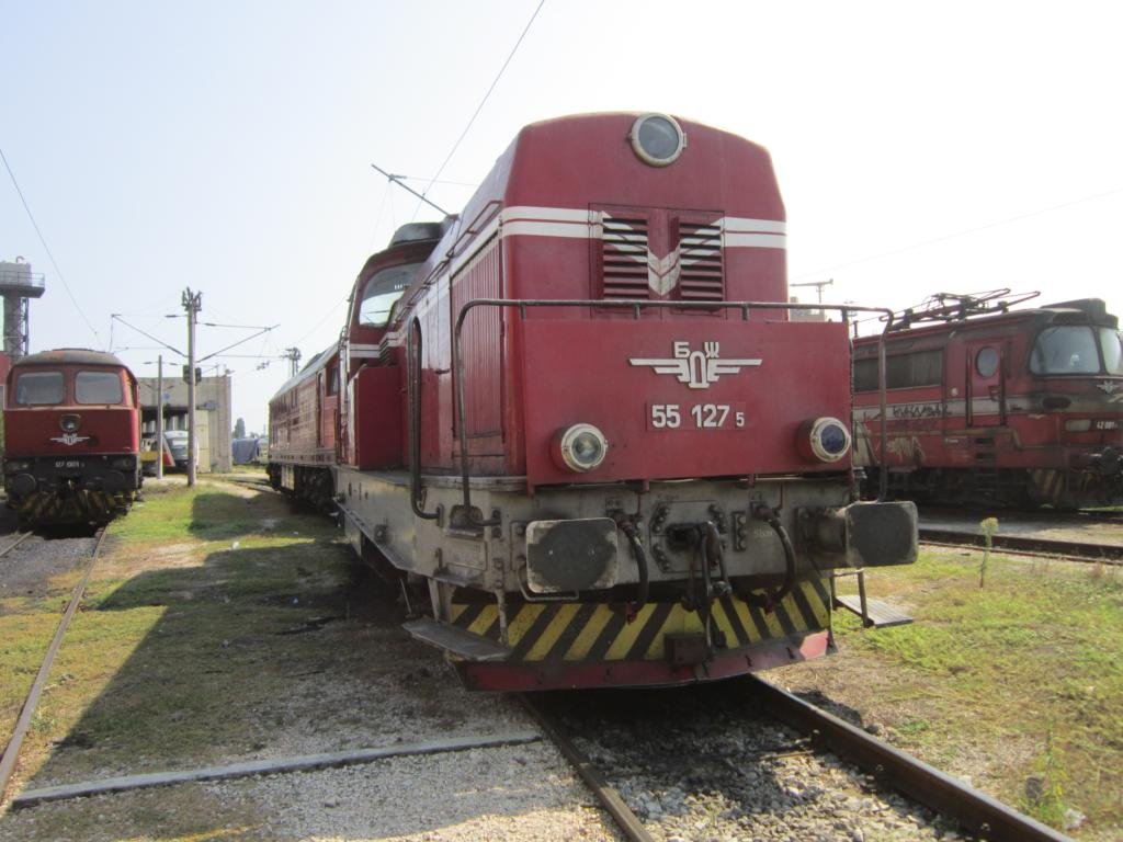 A diesel locomotive with number 55127-5 standing in depot Varna.