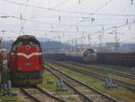 55137-4 shunting on railway station Dimitrovgrad with freight cars.