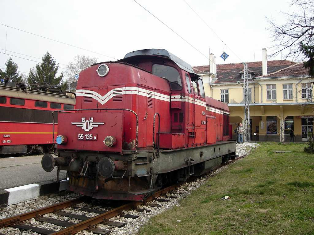 BDZ Diesel locomotive 55.135.8 at railway station Vidin.