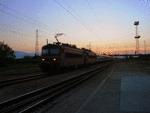 44081-8 on railway station Pazardjik wihth night fast train with number IR 8626 Inter Regio from Burgas to Sofia via Plovdiv.