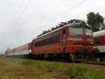 Electric locomotive 44 109 passes through the station of Duskotna with international fast train BOSPHORUS (Istanbul - Ruse - Bucuresti - Budapest). 4 cars, 4 different railway authorities: BDZ, TCDD, CFR, MAV. In the summer of 2006 this train was running through Karnobat and Kaspichan due to repairs on the line Gorna Oryahovitsa - Dubovo. 2 August 2006