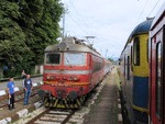 44138-6 (home depot Gorna Oriahovitsa) arriving on railway station Stara Zagora with local train from Ruse.After getting down from passenger cars, large part of people hurry up towards the station,because after several minutes on the 1-st track,arriving express train "Sunny beach" from Burgas to Sofia.