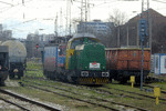 A private diesel shunter with number 92 53 081 0758 - 8 of BRC ("Bulgarian Railway Company") standing in base of "Express Service" near railway station Obrazcov Chiflik.