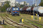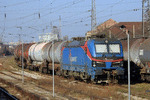 A private electric locomotive SIEMENS Smartron with number 91 52 10 80 024 - 8 , owned by private operator "Bulmarket" near central railway station Ruse with freight train. A video about crossing the train, you can see here: