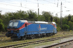 A private electric locomotive SIEMENS Smartron with number 91 52 10 80 025 - 5, owned by private operator "Bulmarket" at railway station Ruse Razpredelitelna with freight train.