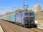 A private electric locomotive SIEMENS Smartron with number 91 52 10 80 025 - 5 , owned by private operator "Bulmarket" cross through railway station Dimitrovgtad central with freight train. A video about crossing through the railway station, you can see here: