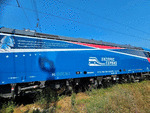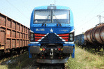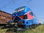 A private electric locomotive SIEMENS Smartron with number 91 52 10 80 055 - 2 , owned by private operator "Express Service" at railway station Iliyantsi after pulling a freight train.