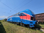 A private electric locomotive SIEMENS Smartron with number 91 52 10 80 055 - 2 , owned by private operator "Express Service" at railway station Obrazcov Chiflik after pulling a freight train.