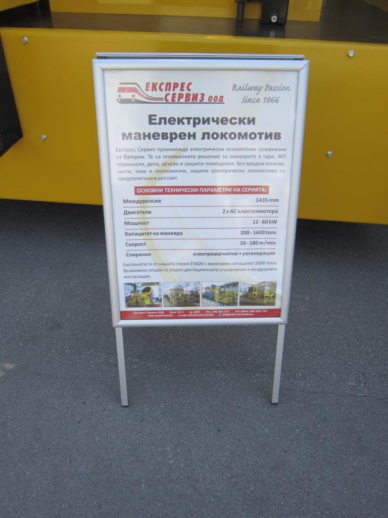 A private electric locomotive , type ES 600 , modernizied version of ES 200 of Bulgarian Company "Express Service" , based in city of Ruse.This mashine is the first shunting locomotive , made in Bulgaria.About the company - "Express Service" is a company with traditions in the railway sector. They employ their knowledge and experience to build new rolling stock and provide various railway services.Also , "Express Service" has originated as a company for repairs and maintenance of locomotives.Locomotives repairs are still their major field of activity. Directly on site or in owned depot, the service is always close to more rail vehicles.The company provide also scheduled and non-scheduled inspection and servicing of diesel locomotives. Locomotive certification preparation and consultation is a service that is needed by loco owners operating outside their private branches , also in a harbours.The web site of the company is http://www.exservice.biz/