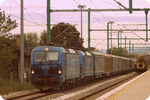 A 2 private electric locomotives SIEMENS Smartron, both owned by private operator "LTE" at central railway station Plovdiv with freight train.