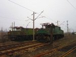 A private electric locomotive EL 2 with number 117 with another electric locomotive EL 2 , owned by "Marica Iztok" power plant , mine "Troianovo sever"- the north mines of Troianovo with freight train.