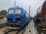 A private electric locomotive SIEMENS Smartron with number 91 52 10 80 016 - 4, owned by private operator "PIMK Rail" at railway station Iskar with freight train.