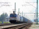 A 2 electric locomotives SIEMENS Smartron and Vectron all owned by private operator "PIMK Rail" at railway station Pazardjik with freight train.