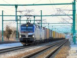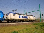 A private electric locomotive SIEMENS Vectron with number 91 52 10 81 972 - 7 , owned by private operator "PIMK Rail" crossing railway station Pazardjik with freight train. A video movie about crossing the train through railway station Pazardjik , you can see on this adress: