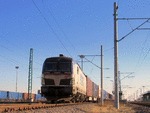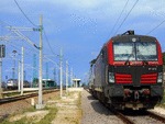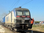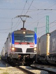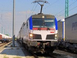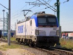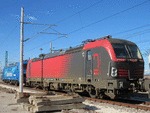 A private electric locomotive SIEMENS Vectron with number 91 52 10 81 972 - 7 , owned by private operator "PIMK Rail" at railway station Todor Kableshkov after pulling a freight train.
