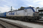 A private electric locomotive SIEMENS Vectron with number 91 52 10 81 972 - 7, owned by private operator "PIMK Rail" standing at railway station Todor Kableshkov before pulling a freight train.