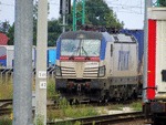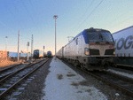 A private electric locomotive SIEMENS Vectron with number 91 52 10 81 972 - 7 , owned by private operator "PIMK Rail" standing at railway station Todor Kableshkov before pulling a freight train.