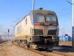 A private electric locomotive SIEMENS Smartron with number 91 52 10 81 972 - 7 , owned by private operator "PIMK Rail" at railway station Todor Kableshkov before pulling a freight train.