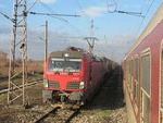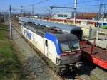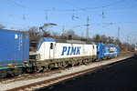 A private electric locomotive SIEMENS Vectron with number 91 52 10 81 972 - 7 , owned by private operator "PIMK Rail" standing at railway station Dimitrovgrad ZS (border station between Serbia and Bulgaria) with freight train.