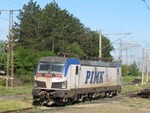 A private electric locomotive SIEMENS Vectron with number 91 52 10 81 972 - 7 , owned by private operator "PIMK Rail" at railway station Kostenets with freight train.