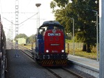 A private diesel locomotive with number 98 52 00 55302 - 4 , owned by private company "Port Rail" standing at railway station Manole.