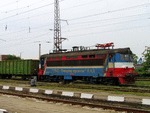 A private electric locomotive with number 91 52 00 43 556 - 7 , owned by private operator TPPBD ("Termo Power Plant Bobov Dol") at railway station Voluyak with freight train.