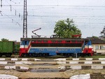 A private electric locomotive of class 43-00 with number 91 52 00 43 556-7 , owned by private operator TPPBD ("Termo Power Plant Bobov Dol") standing at railway station Iskar before pulling a freight train.