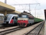 A private electric locomotive of class 44-00 91 52 00 44072-4 of company TPPBD (Termo Power Plant Bobov Dol) entering at central railway station Plovdiv with freight train.