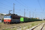 A private electric locomotive with number 91 52 00 44 083 - 1 , owned by private operator TPPBD ("Termo Power Plant Bobov Dol") at railway station Filipovo with freight train.