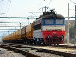 A private electric locomotive of class 44-00 with number 91 52 00 44083-1 of company TPPBD ("Termo Power Plant Bobov Dol") crossing through railway station Pazardjik with freight train.