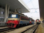 A private electric locomotive of class 44-00 with number 91 52 00 44143-3 , owned by private operator TPPBD ("Termo Power Plant") standing at central railway station Sofia after pulling a freight train.
