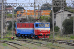 A private electric locomotive with number 91 52 00 46 006 - 0 (exBDZ 46006-3), owned by private operator TPPBD ("Termo Power Plant Bobov Dol") at railway station Filipovo with freight train.