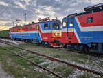 A 2 private electric locomotives of class 46, owned by private operator TPPBD ("Termo Power Plant Bobov Dol") at railway station Filipovo with freight train.