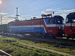 A private electric locomotive with number 91 52 70 46 016 - 9, owned by private operator TPPBD ("Termo Power Plant Bobov Dol") at railway station Filipovo with freight train.