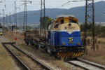 A private diesel shunter with number 55223-2, owned by private company Trans stroi, Varna standing at railway station Ihtiman with work train.