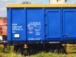 A private freight cars "Eaos" , owned by Factory for repair and modernization "VRZ 99" , standing on railway station Septemvri in composition of freight train.