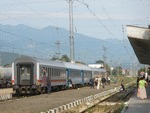 A view from railway station Septemvri.An express train "Diana" with number IC 8604 Inter City from Iambol to Sofia has arrived on the station.